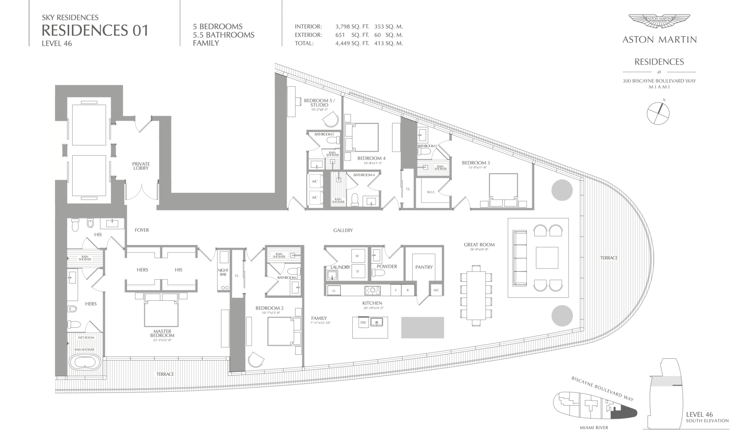 Aston Martin Residences is located in a setting that perfectly captures the spirit of excitement and graceful beauty for which the brand is world-famous. One of the last parcels of Miami waterfront, the building offers panoramic views of Biscayne Bay, the Miami River and the dynamic city skyline.